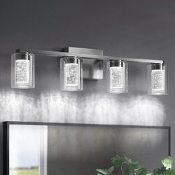 Bathroom Light Fixtures, 4 Light Brushed Nickel Vanity Light Over Mirror, 3 Color LED Bathroom Vanity Lights with Crystal Bubble Glass, Dimmable Bubbl$35Hesperia, CA