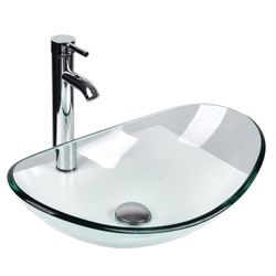 Bathroom Boat Shape Artistic Glass Vessel Sink Free Chrome Faucet and Pop-up Drain Set, Clear$70Fontana, CA
