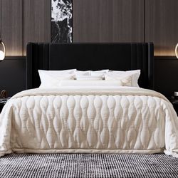 Queen Size Velvet Bed Frame/Vertical Channel Tufted Wingback Headboard/Upholstered Platform Bed/Strong Wooden Slats/No Box Spring Needed/Easy Assembly$120Rancho Cucamonga, CA