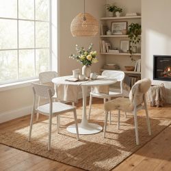 Round Dining Table Set for 4,Wood Round Kitchen Table and Chairs Set for 4,Modern Dining Room Table Set with 4 Faux Leather Chairs,Round D$150Rancho Cucamonga, CA