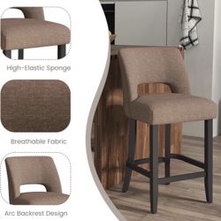Two bar stools, bar stools Upholstered with counter height, modern stools with Black legs for kitchen, dining island or bar, brown color$140Rialto, CA
