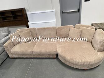 NEW Modern Sectional Sofa with Large Curved Chaise Lounge Set Tan Khaki Beige Fabric Ashley Style Designer Choice Discount BIG Couch SALE Dark Grey$549Riverside, CA