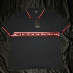 True Religion Relaxed Stripe Polo Shirt, Black W/ Red Stripe, Size Large$0Bloomington, CA