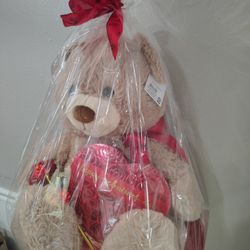 Large Bear With Chocolates And Plastic Shiny Rose$50Highland, CA