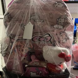 Sanrio Hello Kitty plush toy in classic blue overalls and a red bow. $10Hesperia, CA