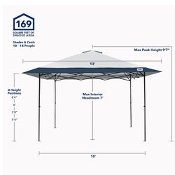 E-Z UP 13x13 ONE-UP Instant Canopy Tent – Pop Up Outdoor Shade Tent with Vented Top, Adjustable Height & Roller Bag$100Loma Linda, CA