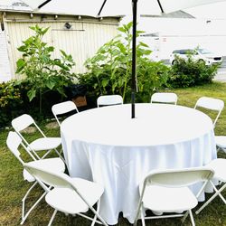 Umbrella sets includes tables, umbrella, plastic folding chairs and linens for next party R. E. N. T. A. L. Adelanto, Victorville, phelan, a$55Victorville, CA