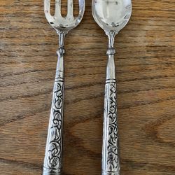 Silver Plate Metal Salad 9” L Large Fork & Spoon Set Vintage Collectible $40Adelanto, CA