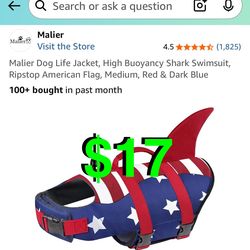 Dog Life Jacket, High Buoyancy Shark Swimsuit, Ripstop American Flag, Medium, Red & Dark Blue$17Rancho Cucamonga, CA