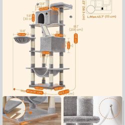 Cat Tree, 206 cm Large Cat Tower Condo with 13 Scratching Posts, 2 Perches, 2 Caves, Basket, Hammock, Pompoms, Multi-Level Design, Light Gray UPCT190W$60Rancho Cucamonga, CA