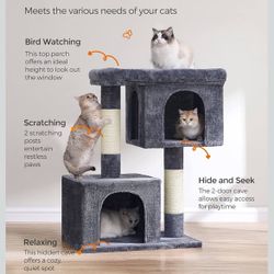 Cat Tree, 44.1-Inch Cat Tower for Indoor Cats, Multi-Level Cat Condo with Scratching Posts, Perches, Hammock and Cave, Smoky Gray UPCT261G01$25Rancho Cucamonga, CA