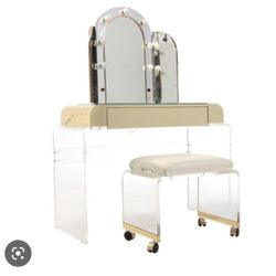 VINTAGE STYLE WHITE FINISH 3 PIECE VANITY MIRROR TABLE STOOL SET - TOCADOR BANCO ESPEJO$599San Bernardino, CA