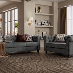 5 Seater 2pcs Linen Chesterfield Couches, Armchair Loveseat Sofa Set Tufted Couch for Living Room$599Rancho Cucamonga, CA