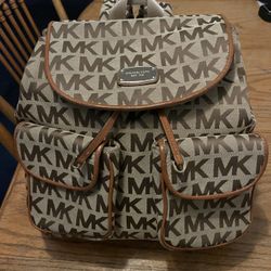 Michael Kors Signature MK Jacquard Logo Brown / Leather Large Backpack Very Clean $100Adelanto, CA