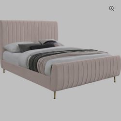 Full Size Bed Velvet Bed Frame With Vertical Channel Tufted Wingback Headboard Upholstered Platform Bed $95Rialto, CA