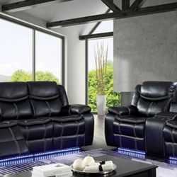 Brand New Black Leather Reclining Sofa & Loveseat w LED Lights & Bluetooth Speaker $2,299Rancho Cucamonga, CA