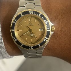 OMEGA Seamaster 200m Date YG bezel gold Dial Quartz Men's Watch R#143993 , Serviced$450Grand Terrace, CA