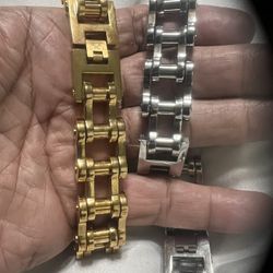 2 Stainless Steel Motorcycle Chain Bracelets Gold And Silver Tone$55Rancho Cucamonga, CA
