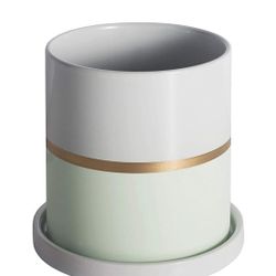 Ekirlin 6 inch Plant Pot - Ceramic Flower Planters Indoor - Modern Succulents Containers with Drain Hole Saucer, Decorate Home, Office & Outdoor (Gree$20Fontana, CA