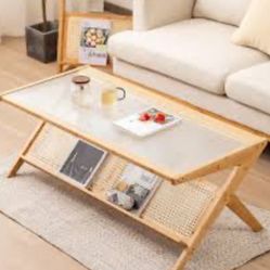 Bamboo End Table with Magazine Rack Glass-top Sofa Side Table Accent Bedside Nightstand Boho Z Shaped Coffee Table for Bedroom Living Room Small Space$30Rancho Cucamonga, CA