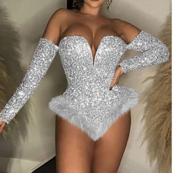 SMALL Sequin Bodysuit for Women Mardi Gras Carnival Outfits Off Shoulder Sexy Birthday Party Club Night Corsets Jumpuits$15Fontana, CA