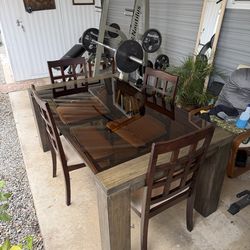 Large dining room table glass 4 chairs$200Highland, CA