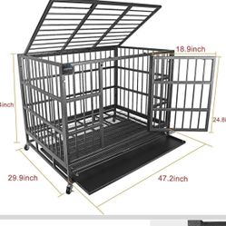 48 inch Heavy Duty Dog Crate, Dog Cage for Large Dogs, Escape Proof Dog Kennel with Wheels and Removable Tray $140Alta Loma, CA