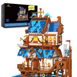 JMBricklayer Medieval Fishing Shop Building Sets for Adults, LED Lighting Kit Creative Fishing Gear Store Castle House Model Toy, Collectible or Home $70Grand Terrace, CA