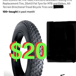 20x4.0 Fat Tire Tube, Puncture Resistant Folding MTB Replacement Tire, 20x4.0 Fat Tyre for MTB and Ebikes, All-Terrain Directional Tread Bicycle Tire$20Rancho Cucamonga, CA