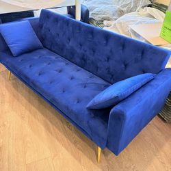 Modern Blue Futon Sofa Bed Velvet Convertible Lounge Couch$80Hesperia, CA