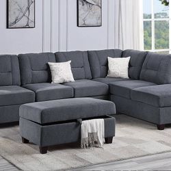 Brand New Dark Grey Polyfiber Sectional Sofa w Storage Ottoman $799Fontana, CA