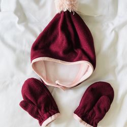 OLD NAVY Winter Snow Warm Fleece The Hat & Mittens set Pink-Burgundy- Baby Toddler S $7Rancho Cucamonga, CA