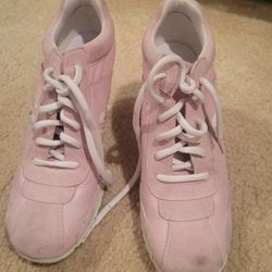 Skechers, sneakers heels, size 6 1/2, used but still really cute soft pink, $10Victorville, CA