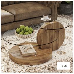 Coffee Table 43in Modern and Practical Double-Layer Wood Round Glass Table. Tempered Glass Table Top Wooden Table Legs. Suitable for Living $130Rancho Cucamonga, CA
