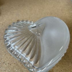 Glass, Half Etched Heart Shaped Candy Dish With Lid$12San Bernardino, CA