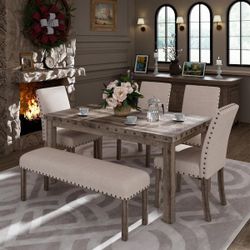 6-Pieces Rustic Rectangular Wood Tone Top Dining Table with Chair and Bench Set for Farmhouse Kitchen 6-Seats$599Fontana, CA