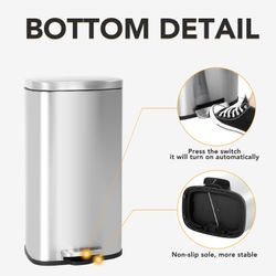 8 Gallon(30L) Trash Can, Fingerprint Proof Stainless Steel Kitchen Garbage Can with Removable Inner Bucket and Hinged Lids, Pedal Rubbish Bin for Home$30Alta Loma, CA