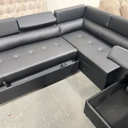 Brand New Black Leather Reclining Sectional Sofa $1,099Rancho Cucamonga, CA