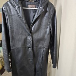 Wome's Black Leather Buttons Hooded Coat Size Medium$65Rancho Cucamonga, CA