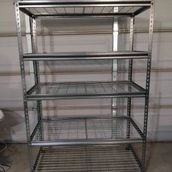 Commercial-grade metal shelving unit.