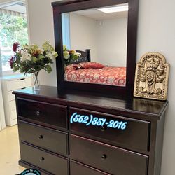 Six Drawer Cherry Pinewood With Mirror New Chest Cajonera $688Redlands, CA