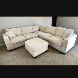 Beautiful Beige Corduroy Sectional Sofa With Ottoman 99x99 "$519Rancho Cucamonga, CA