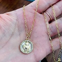 Gold plated necklace 18k Pave Gold Plated Medalla sagrado corazón pendant necklace -shell medal sacred Heart necklace- burning heart pendant$25Rancho Cucamonga, CA