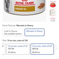 Royal Canin Veterinary Diet Adult Urinary SO Morsels in Gravy Canned Cat Food, 3-oz, case of 24$50Redlands, CA