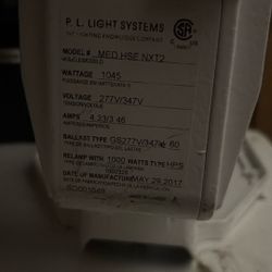 P.L. LIGHT SYSTEMS MED NXT2 RST 1045W 277V 60HZ HPS FIXTURE$150Fontana, CA