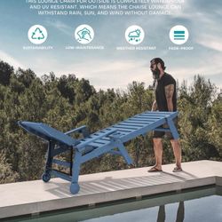 Patio Chaise Lounge Chair Set of 2 with 9FT Patio Umbrella, 78'' HDPE Outdoor Lounger, Poly Lounge Chair with Rolling Wheels & Cup Holder for Pool,Blu$150Rancho Cucamonga, CA