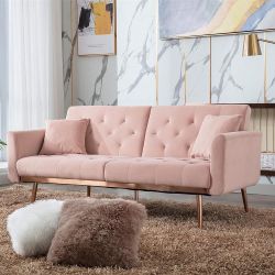 Mid Century Velvet Fabric, Modern Folding, Convertible Futon Bed, Recliner Couch Accent Loveseat Sofa with Rose Gold Metal Feet, Pink$220Fontana, CA