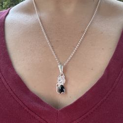 925 Sterling Silver Black And White Genuine Diamond 💎 Heart ❤️ Necklace, 18In. 925 Chain , Both Hallmarked And Diamond Tested In Photos $30Victorville, CA