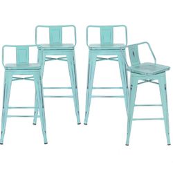064 Swivel Bar Stools Set of 4 Counter Height Swivel Bar Stools with Backs Industrial Barstools for Kitchen (Swivel 26 inch, Distressed Blue-Green Woo$100Bloomington, CA