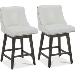 016 Counter Height Swivel Barstools, FSC Certified 26" H Seat Height Upholstered Bar Stools Set of 2, Faux Leather in White$180Bloomington, CA